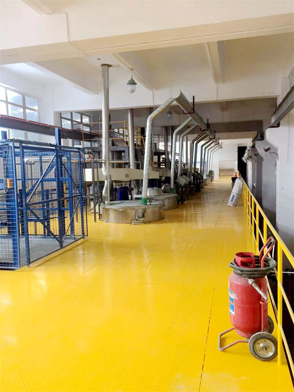 国内环氧地坪材料生产大多数环境、设备、操作比较落后,主要靠人工操作,生产效率底下、产品质量不稳定,批量小、色差大,等等;东莞某地坪材料企业积累多年生产经验,蓄势待发,2018年举重资全力打造全自动生产线,年产10万吨环氧地坪涂料(包括水性生产线、固化剂),一举成为行业领头企业,全自动配料(树脂、溶剂、粉体料)、高效强力分散机(特殊设计)、自动化包装机,整个流水线产能高、品质稳定、生产成本得到有效优化、个人劳动强度完全改善、成批生产色差消除、淡旺季都应付自如;产品品质享誉海内外。