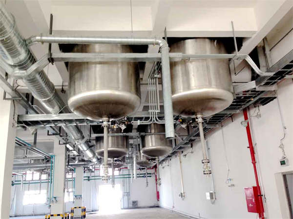 项目产线布置立体化,三层预混,二层研磨+调漆;节约空间,提高效率,解决环保、确保安全、管道无残留。