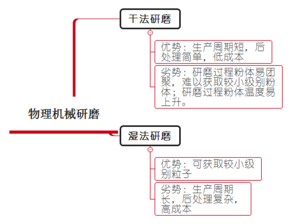 机械干法研磨较难获取亚微米级别的粉体,化学制粉成本高,因此湿法研磨成为制备超细粉体的一个重要手段。从实际应用来看,这两者之间并没有的优劣之分,要根据实际的产品特点及经济效益来选取适当的处理方法。